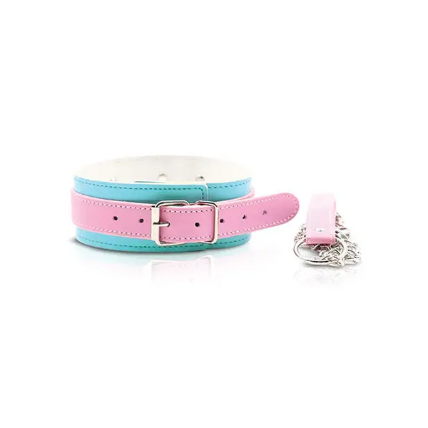 Nobu Fetish Choker & Leash Set - Pink/Blue