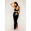 <p>This set comprises a stretch faux-leather harness bra and a long slip skirt adorned with striking black chain details, crafting a bold and edgy look. The fully-boned halter bra features captivating black chain details and a back keyhole secured with hook & eye closures, adding a bold statement to the ensemble. The matching skirt is accentuated with a fully-boned waist corset and multiple black chain details, boasting a back keyhole opening and a hook & eye closure, culminating in an edgy and complete ensemble.</p>